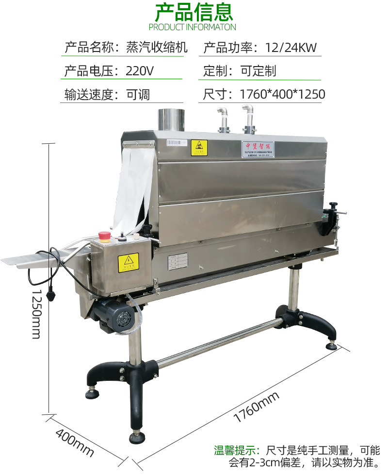 總之,蒸汽收縮機是一種高效、節(jié)能、環(huán)保的包裝設(shè)備,廣泛應(yīng)用于各個行業(yè)。在使用過程中,應(yīng)嚴格遵守操作規(guī)程,注意安全,選擇合適的包裝材料,定期對設(shè)備進行維護和保養(yǎng),以確保設(shè)備的正常運行和產(chǎn)品的包裝質(zhì)量。