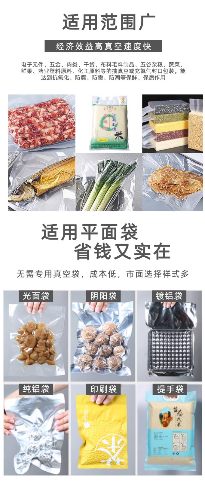 立式外抽真空包裝機(jī)抽氣不充分可能由設(shè)備本身部件、包裝材料及操作等多方面原因造成,以下是具體介紹: