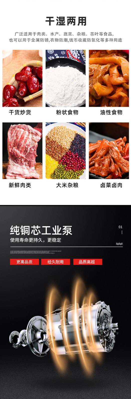 • 真空泵規格:這是決定效率的基礎。真空泵的抽氣速率(單位 m3/h)越快,達到目標真空度的時間就越短,單次包裝周期隨之縮短。