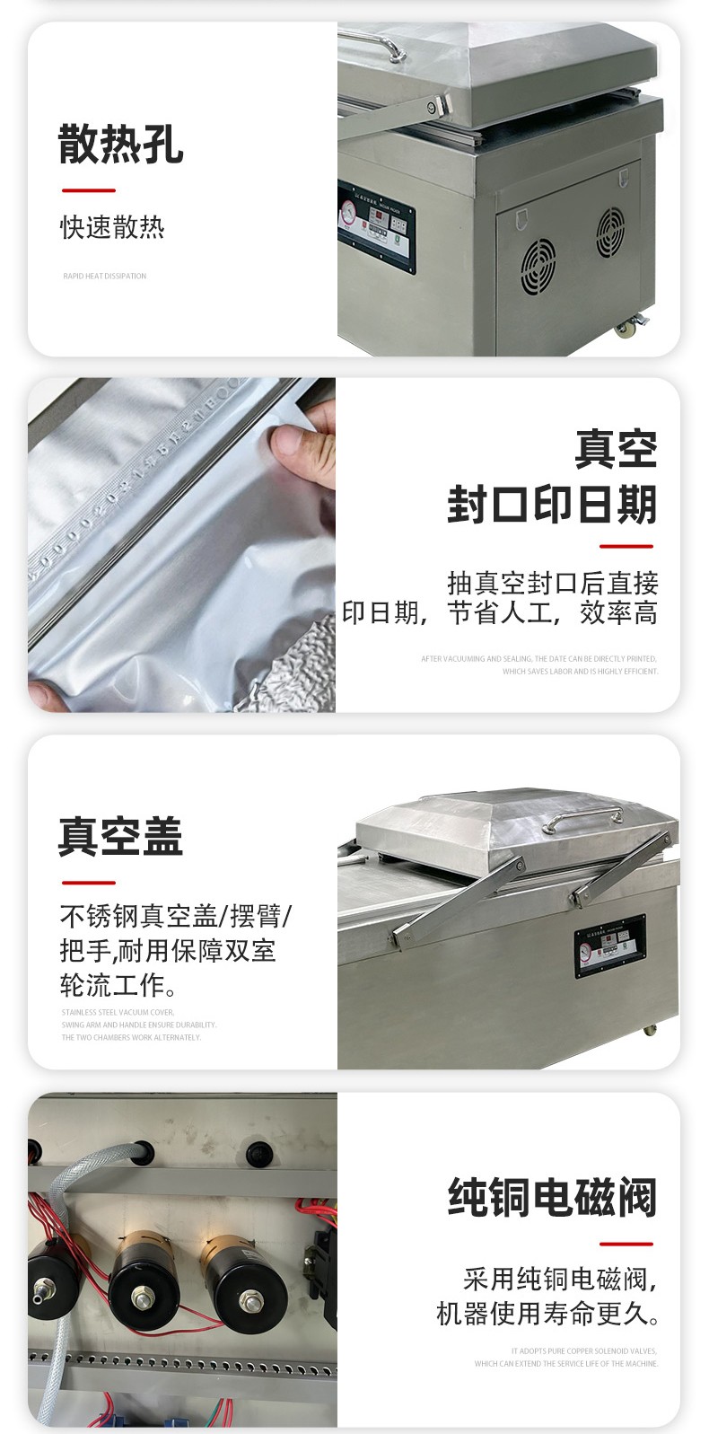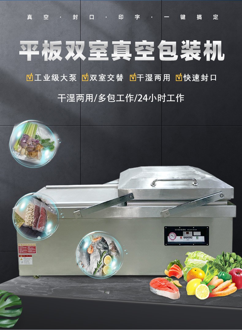 • 人工操作熟練度:操作人員放置產品、撫平袋口、取出成品的速度,直接影響兩個真空室的交替銜接效率。新手操作可能導致 “空等” 時間增加。