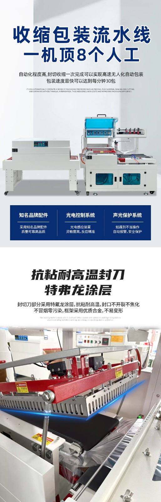 能夠自動完成產(chǎn)品的進(jìn)料、套膜、封切、熱收縮及出料等全過程,實(shí)現(xiàn)連續(xù)不斷的流水線作業(yè),無需人工干預(yù)。