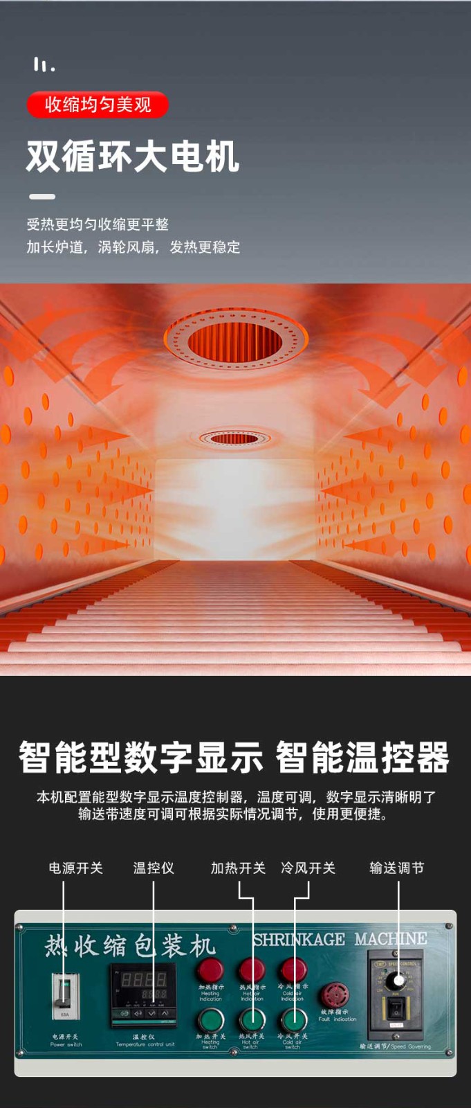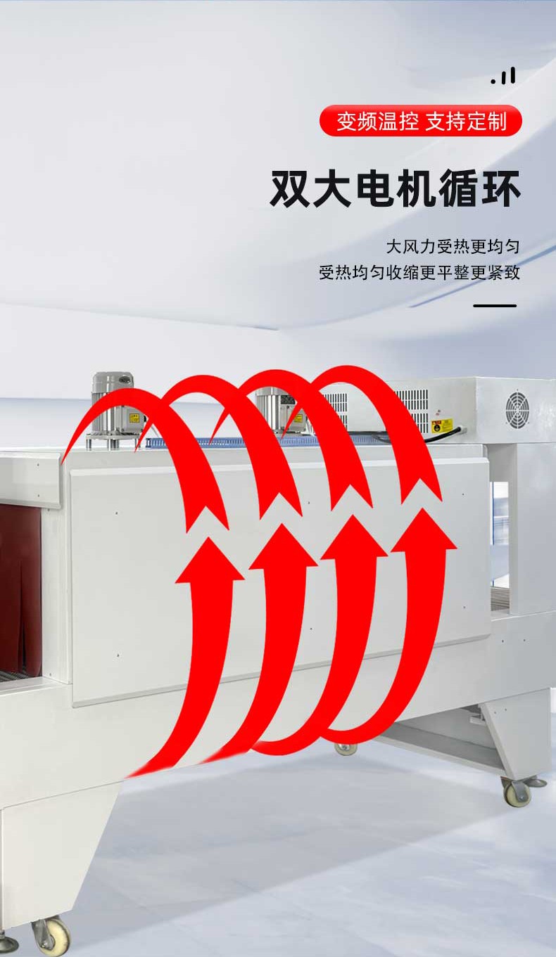 袖口式封切熱收縮包裝機(jī)憑借 高效密封、防塵防潮、貼合定型、便于堆疊運(yùn)輸 的核心優(yōu)勢,廣泛應(yīng)用于多行業(yè)的標(biāo)準(zhǔn)化包裝需求,尤其適配批量生產(chǎn)的規(guī)則 / 異形產(chǎn)品組合包裝。 一、食品飲料行業(yè)(最核心應(yīng)用領(lǐng)域) 瓶裝 / 罐裝產(chǎn)品組合包裝 礦泉水、啤酒、飲料、涼茶等 多瓶捆綁包裝(如 6 瓶 / 12 瓶 / 24 瓶組),無底托收縮膜直接包裹,替代傳統(tǒng)紙箱 / 膠帶,降低包裝成本 30%+,且透明膜可展示產(chǎn)品品牌; 罐頭、醬料瓶、食用油桶等 單瓶 / 多瓶密封包裝,防止運(yùn)輸過程中泄漏、氧化,延長保質(zhì)期(尤其適用于含油脂、易受潮食品)。 零食與烘焙產(chǎn)品包裝 餅干盒、薯片罐、面包禮盒等 多盒組合包裝(如 3 盒 / 6 盒套裝),收縮膜緊密貼合,避免禮盒散開,同時(shí)防塵防潮,提升禮盒檔次; 冷凍食品(如速凍水餃、湯圓)的 外箱收縮包裝,強(qiáng)化箱體密封性,防止冷鏈運(yùn)輸中受潮解凍。 符合食品級(jí)包裝標(biāo)準(zhǔn)(適配 PE/POF 無毒膜),包裝速度快(8-15 包 / 分),適配生產(chǎn)線連續(xù)作業(yè),同時(shí)透明包裝便于終端貨架展示。 高效量產(chǎn),適配規(guī)模化生產(chǎn) 全自動(dòng)機(jī)型包裝速度達(dá) 8-25 包 / 分鐘(單排)、15-40 包 / 分鐘(多排),支持 24 小時(shí)連續(xù)作業(yè),匹配食品飲料、日化等行業(yè)生產(chǎn)線節(jié)拍; 換產(chǎn)靈活,參數(shù)化存儲(chǔ) 100 + 組產(chǎn)品規(guī)格,切換僅需 2-5 分鐘,無需拆卸機(jī)械部件。 包裝效果優(yōu)質(zhì),防護(hù)與展示兼具 熱收縮膜緊密貼合產(chǎn)品輪廓,形成密封、防潮、防塵、防刮的立體包裝,降低運(yùn)輸損耗率至 0.5% 以下; 支持透明膜 / 彩印膜包裝,透明膜可展示產(chǎn)品細(xì)節(jié),彩印膜可印刷品牌 LOGO 與促銷信息,兼顧防護(hù)與品牌營銷。 成本可控,降本增效顯著 無底托包裝設(shè)計(jì)替代傳統(tǒng)紙箱、膠帶,包裝材料成本降低 30%-50%,同時(shí)節(jié)省倉儲(chǔ)與運(yùn)輸空間 40%; 采用紅外加熱或石英管加熱技術(shù),比傳統(tǒng)電熱絲節(jié)能 30%-50%,待機(jī)自動(dòng)降功率,長期運(yùn)行成本更低; 全自動(dòng)機(jī)型僅需 1 人巡檢,降低人工成本 80%,避免人工操作誤差。 兼容性強(qiáng),適配多場景需求 可包裝方形、圓形、異形等多種形態(tài)產(chǎn)品,支持單件 / 多件組合包裝,產(chǎn)品尺寸覆蓋 50mm×30mm×20mm 至 800mm×600mm×500mm(可定制更大規(guī)格); 適配 PE、POF、PVC 等多種熱收縮膜,滿足食品級(jí)(FDA/ROHS)、醫(yī)藥級(jí)(GMP)、工業(yè)防靜電等不同行業(yè)標(biāo)準(zhǔn)。 智能化操作,易上手易維護(hù) PLC 觸控屏可視化操作,參數(shù)設(shè)置直觀,普通工人 1-2 小時(shí)即可獨(dú)立操作,支持故障自動(dòng)報(bào)警與修復(fù)提示; 模塊化結(jié)構(gòu)設(shè)計(jì),封刀、加熱管等易損件更換便捷,日常維護(hù)僅需清潔、緊固,維護(hù)成本降低 40%。 環(huán)保合規(guī),符合綠色生產(chǎn)趨勢 采用可回收、無毒環(huán)保膜材,無粉塵、無異味排放,符合全球綠色包裝政策; 減少紙箱、膠帶等不可降解材料使用,降低快遞垃圾與資源浪費(fèi),適配電商、物流行業(yè)環(huán)保要求。