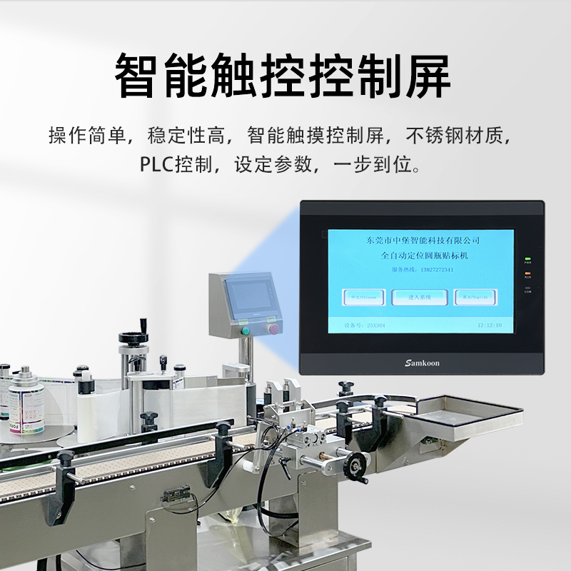 定位精準穩定:采用三點定位、伺服驅動與光電追蹤,可在圓周面指定位置貼標,正背雙標間距可調;滾壓機構確保標簽平整無氣泡,重合度高。