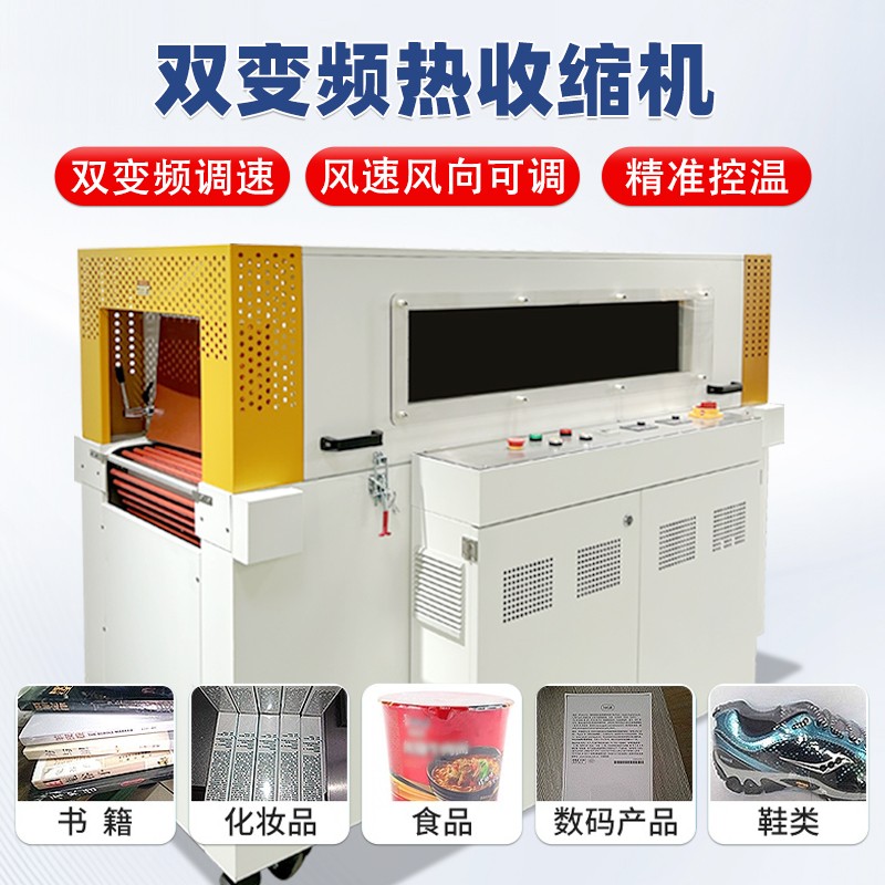 • 雙變頻熱收縮機:配備兩個獨立變頻器,分別控制輸送電機加熱 / 熱風電機,可實現無級調速、精準控溫。針對不同產品和膜材,能單獨調整輸送速度或加熱功率,無需聯動調試,適配性更強,尤其適合多品類小批量生產場景。