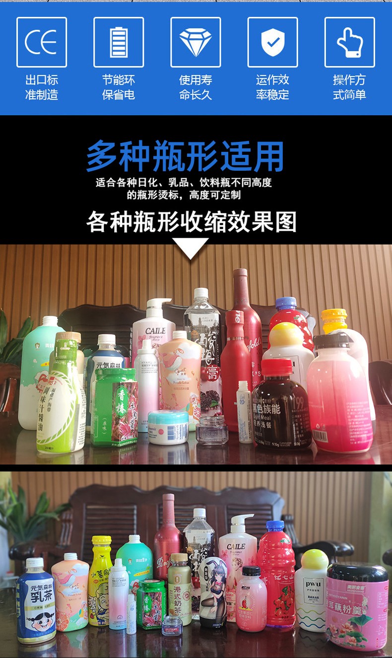 • 適用范圍廣:適用于各種形狀和尺寸的容器,如玻璃瓶、塑料瓶、紙杯等,以及多種材質的標簽膜或收縮膜,如 PVC、PET 等。廣泛應用于食品飲料、化妝品、電子產品、五金工具等多個行業14