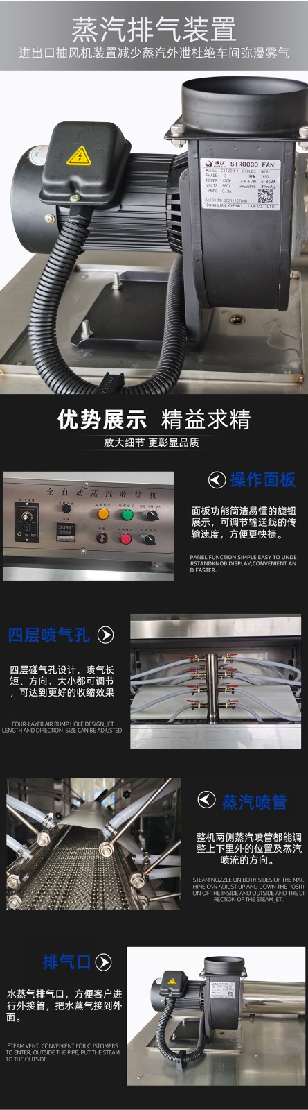 • 操作維護簡便:設計精巧,外型美觀,不占空間,移動、安裝迅速快捷。部分蒸汽收縮機可掀蓋查看機器內部的情況,清潔保養起來更方便4