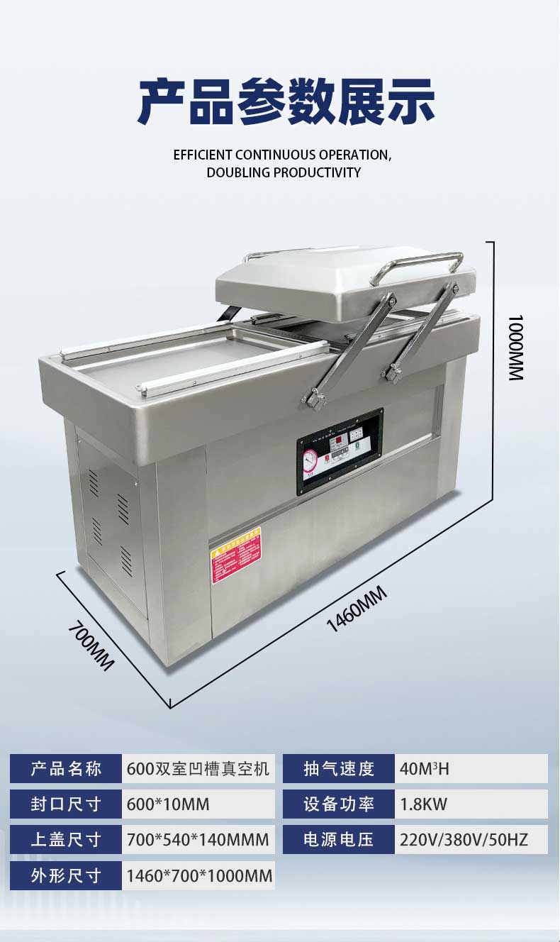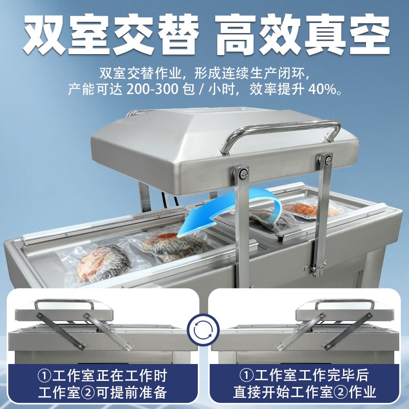 - 高效包裝:兩個真空室可交替工作,當一個真空室進行抽真空和封口操作時,另一個真空室可進行下一批產品的擺放等準備工作,大大提高了包裝效率,減少了整體運作時間3。