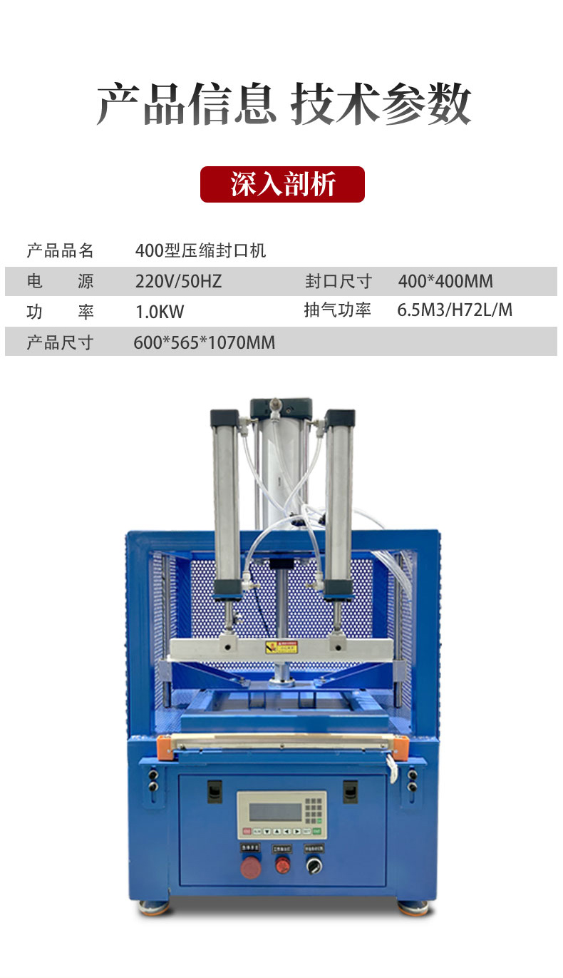 - 適應(yīng)性強(qiáng):可根據(jù)不同的產(chǎn)品尺寸、形狀和包裝材料,調(diào)整壓縮和封口的參數(shù),適應(yīng)多種類型的產(chǎn)品包裝需求。