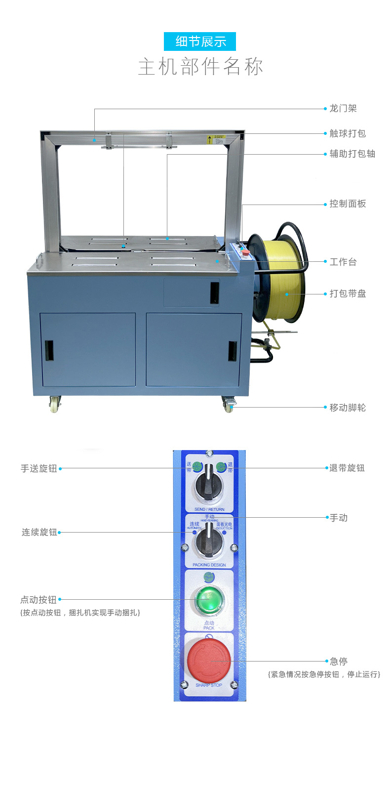 - 自動上帶:機器啟動后,會自動從打包帶卷中抽出打包帶,并將其傳送到預定的位置,準備進行打包。這個過程無需人工干預,大大提高了工作效率。