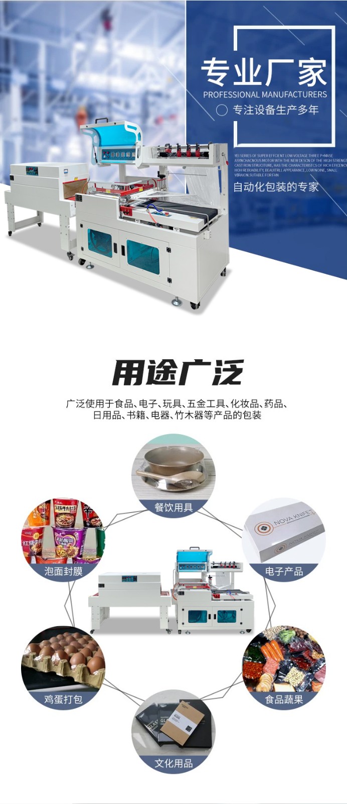 - L 型封切刀確保膜的封邊平整、無(wú)毛邊,熱收縮后膜與產(chǎn)品緊密貼合,無(wú)褶皺、無(wú)氣泡,不僅提升產(chǎn)品外觀檔次,還能實(shí)現(xiàn) “防水、防塵、防氧化”,延長(zhǎng)產(chǎn)品保質(zhì)期(尤其適合食品、醫(yī)藥行業(yè))。