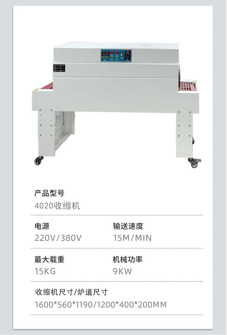 - 部分設(shè)備在收縮爐出口設(shè) “冷卻定型區(qū)”,通過(guò)冷風(fēng)快速降溫,避免膜因余熱回彈,確保包裝形態(tài)穩(wěn)定;