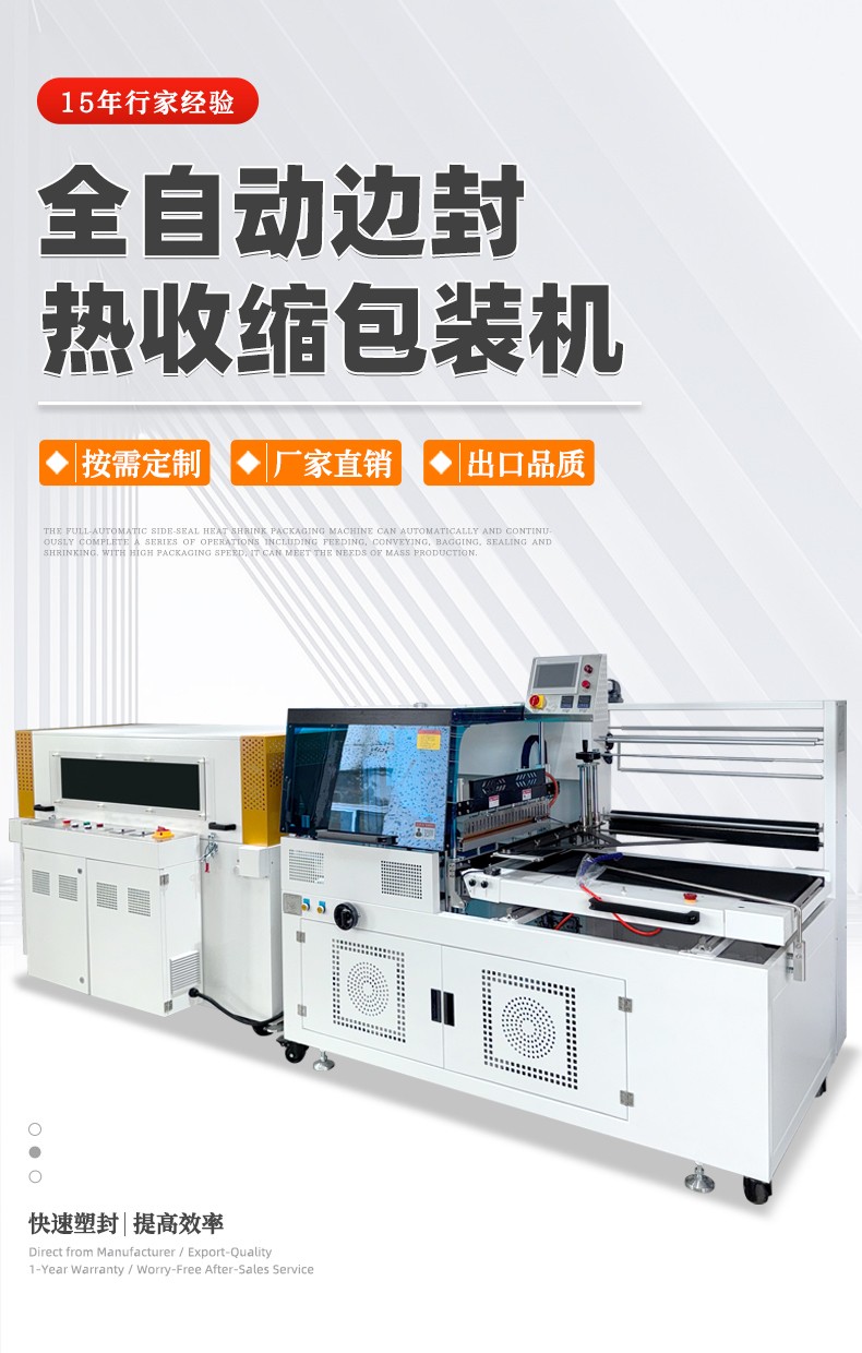 利用薄膜輸送系統將包裝薄膜圍繞產品,然后通過邊封裝置對薄膜的側邊進行密封,形成一個包裹產品的袋子。之后,產品被輸送到熱收縮通道,熱空氣使薄膜收縮并緊緊貼合在產品表面,完成包裝。