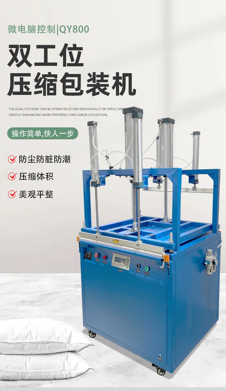 雙工位壓縮封口機:兩個工位可同時作業,一邊封口時另一個可放件 / 取件,適合中小批量、多規格產品(如多口味食品、電子元件袋),效率比單工位高 50%-80%。